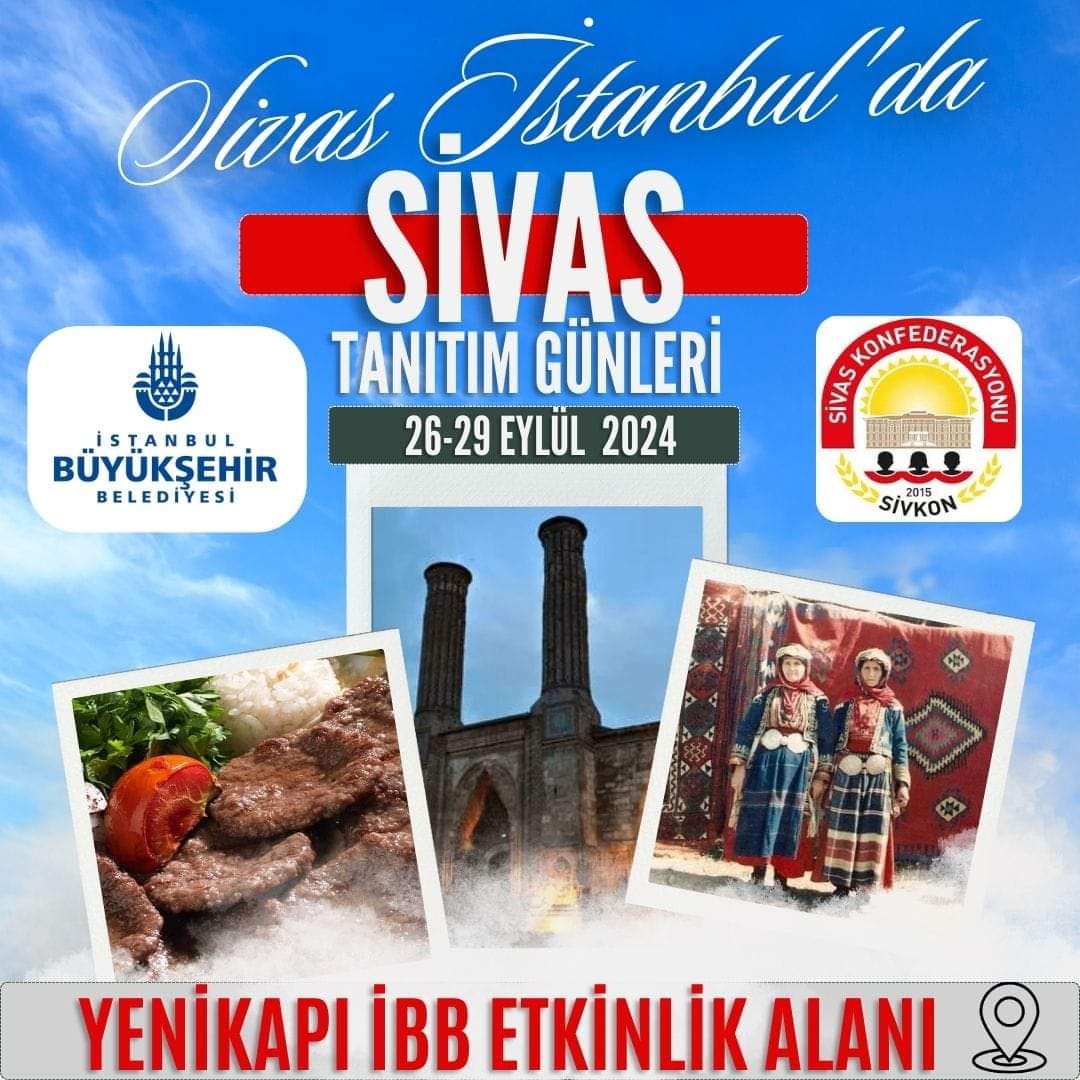Bu yıl İki Farklı Tarihte, İki Farklı Mekanda Yapılacak Sivas Tanıtım Günlerinin ilkini İstanbul Büyükşehir Belediyesi ve Sivas Konfederasyonu işbirliği ile Yeni Kapı Etkinlik alanında 26-29 Eylül 2024 Tarihleri Arasında yapacaklar.